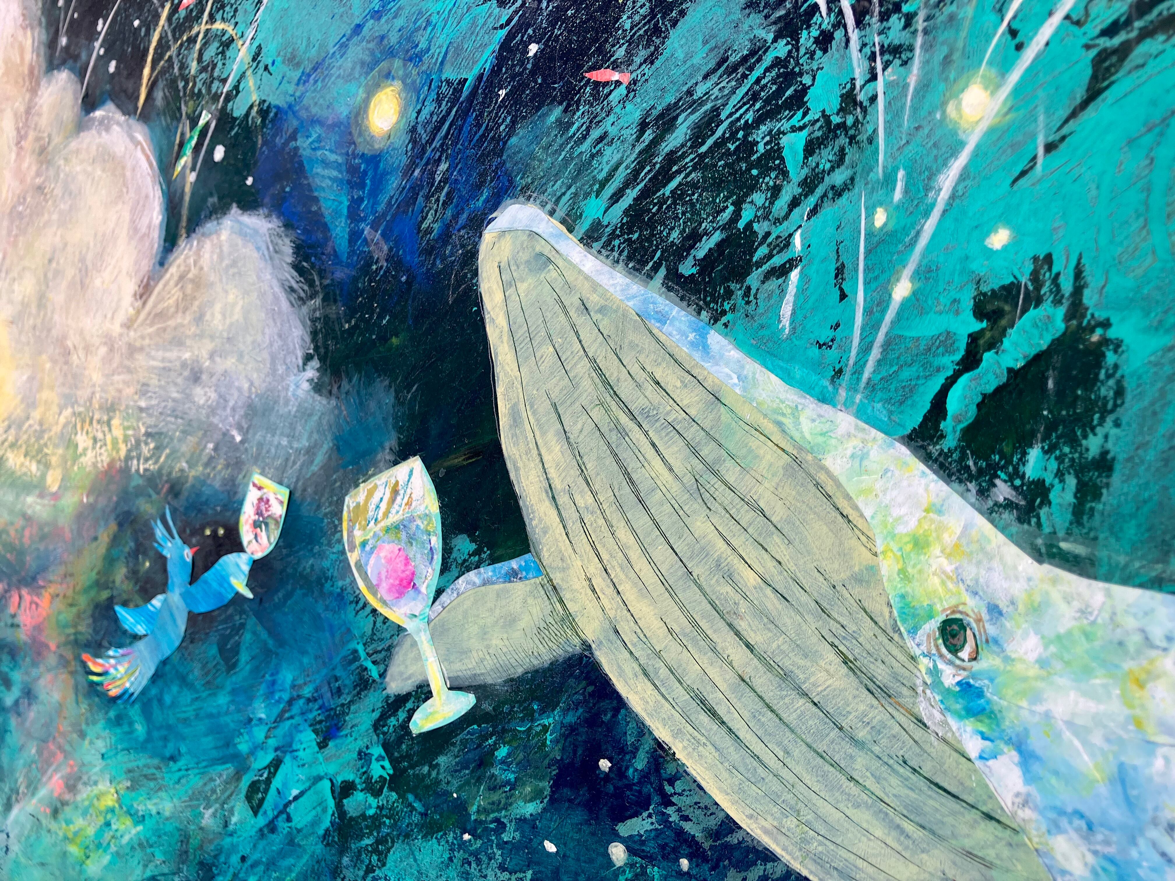 ※クジラの腹部の貼り絵部分には、
