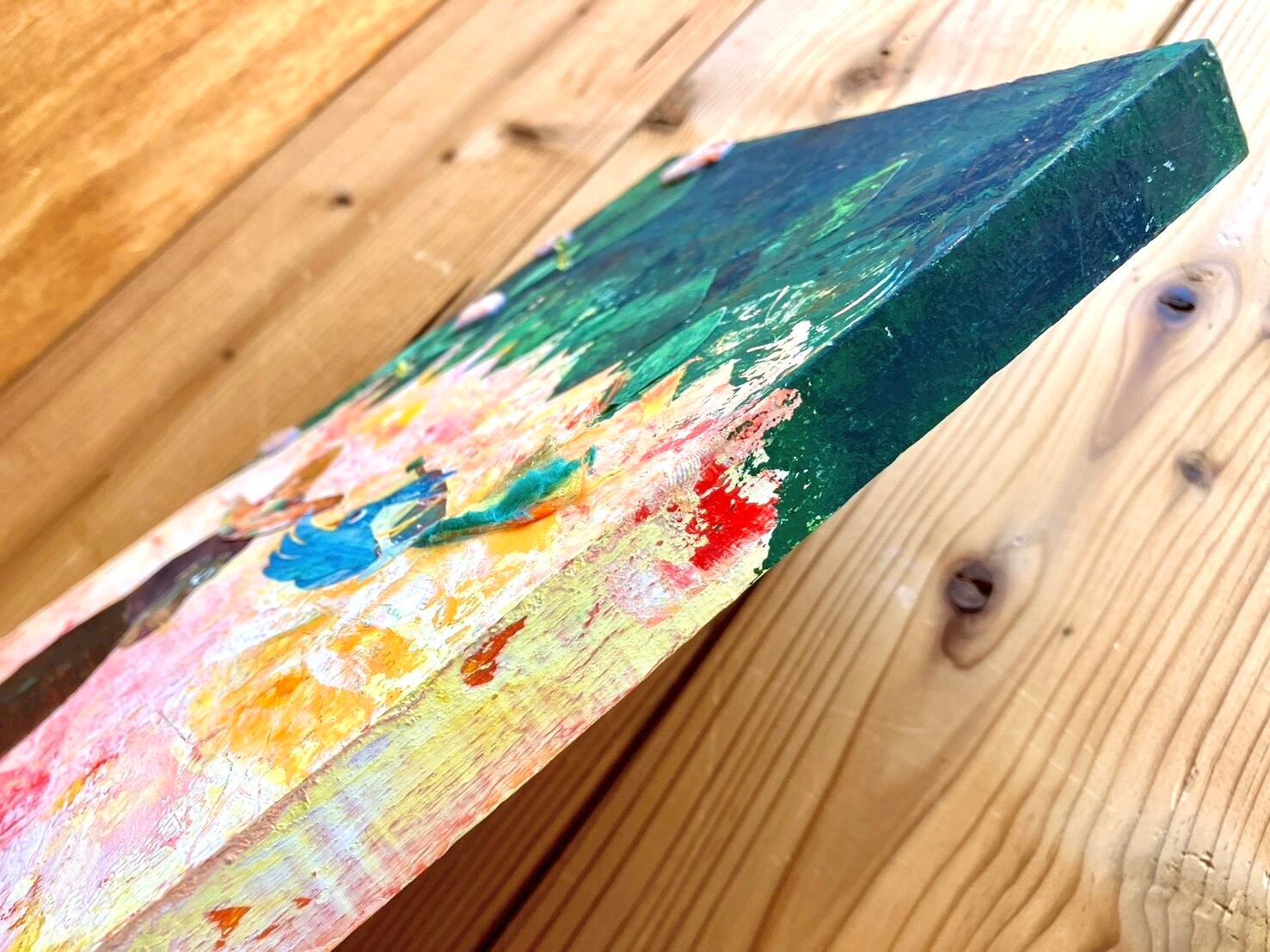 素材の重なりや絵の具の表情を感じていただけます。