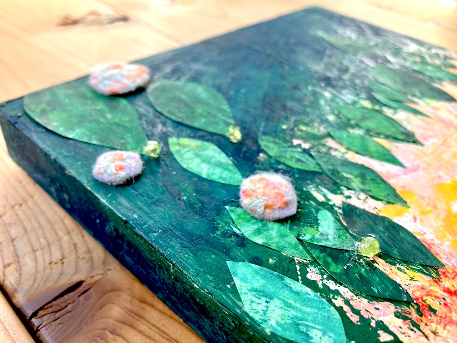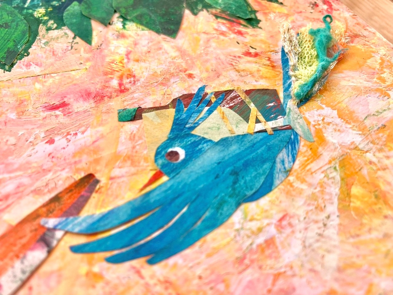葉や花には紙や羊毛を重ね、