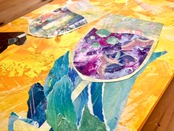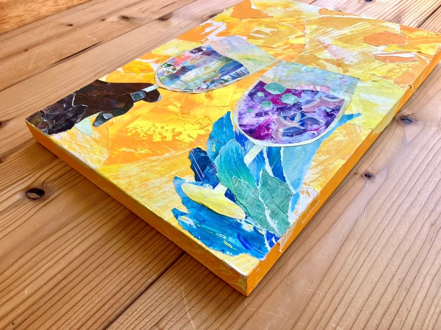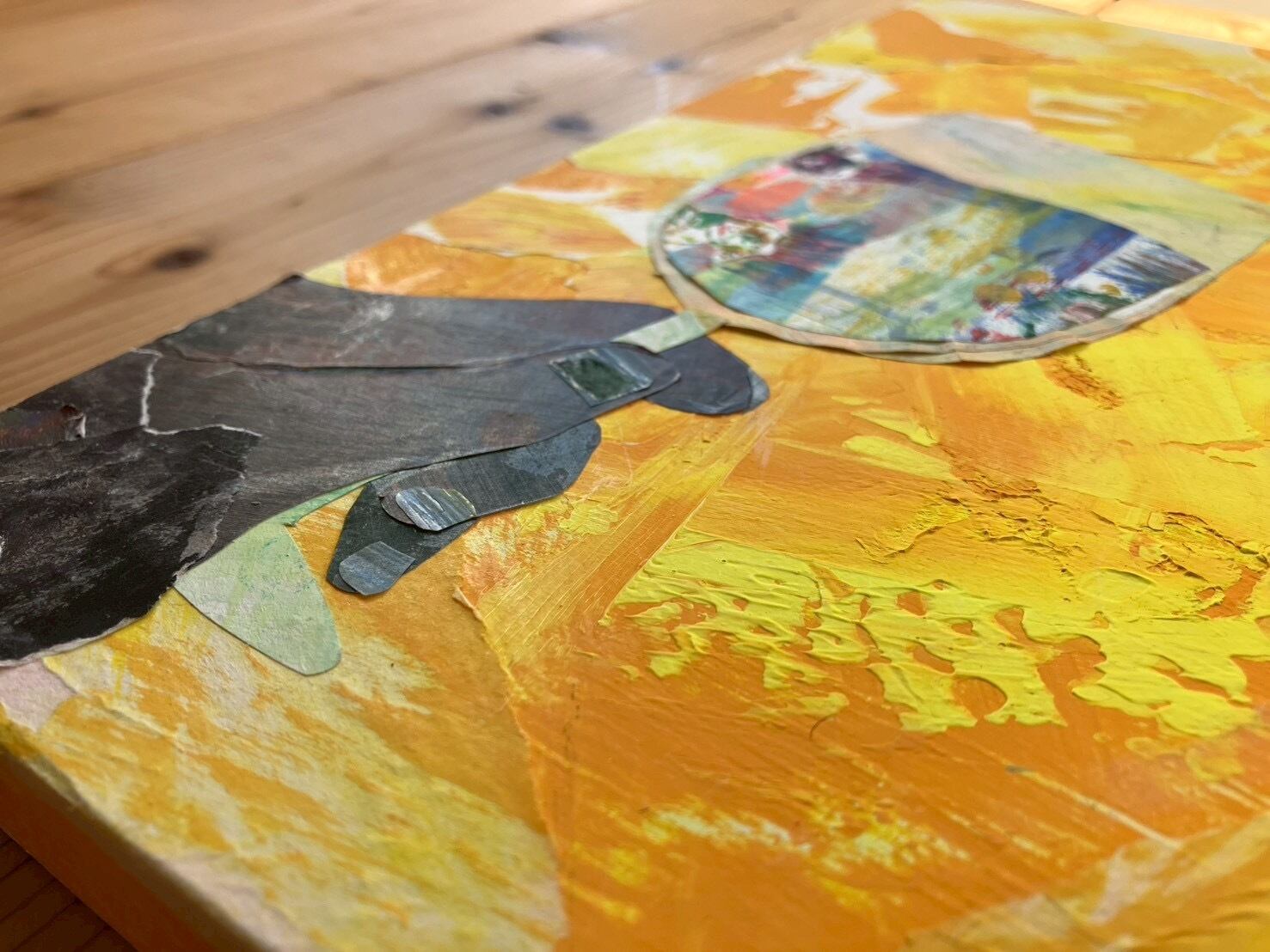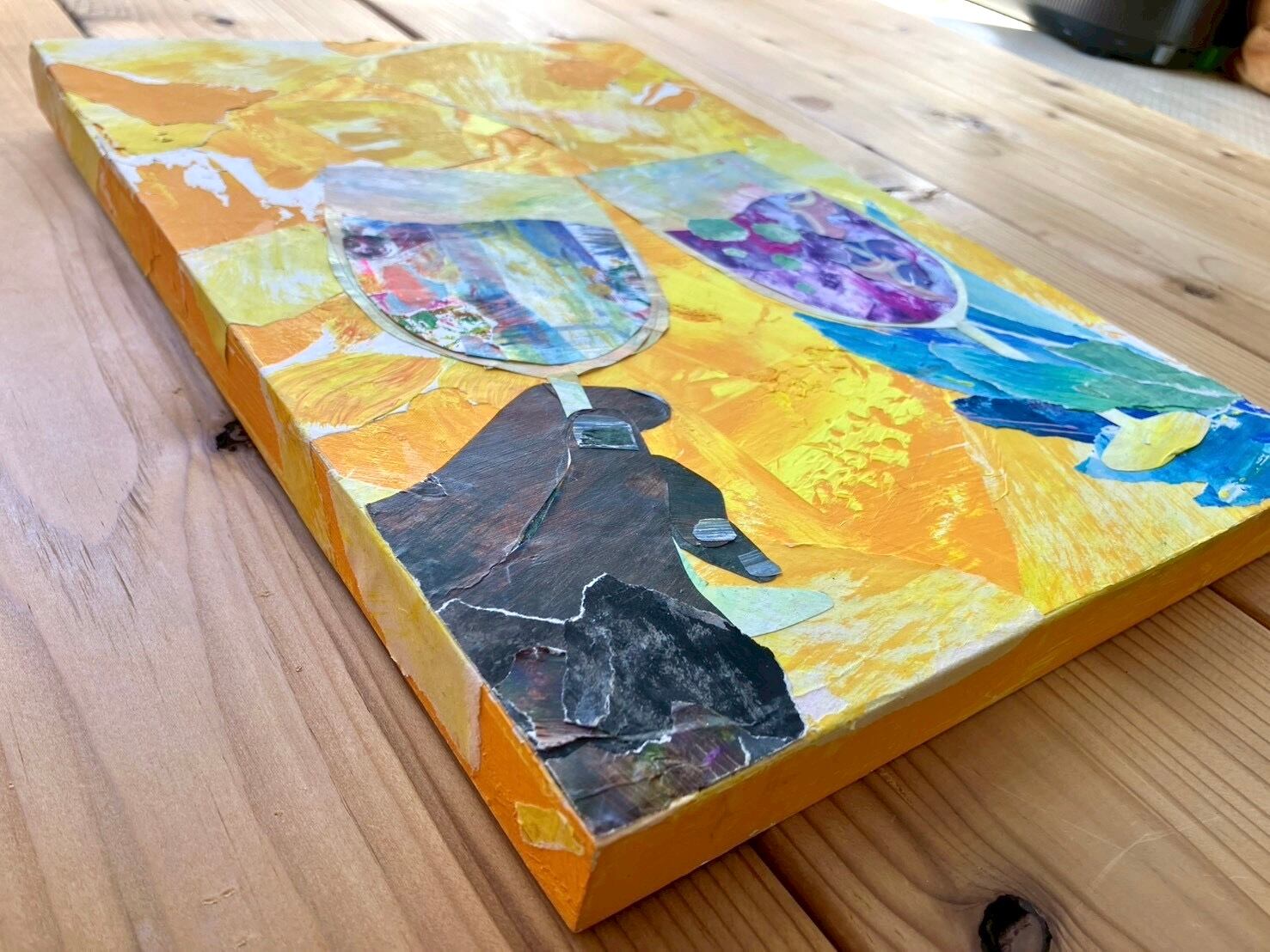 黄系の色を貼り絵で重ね、